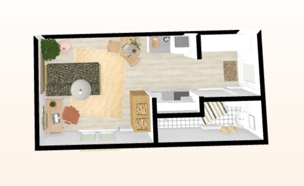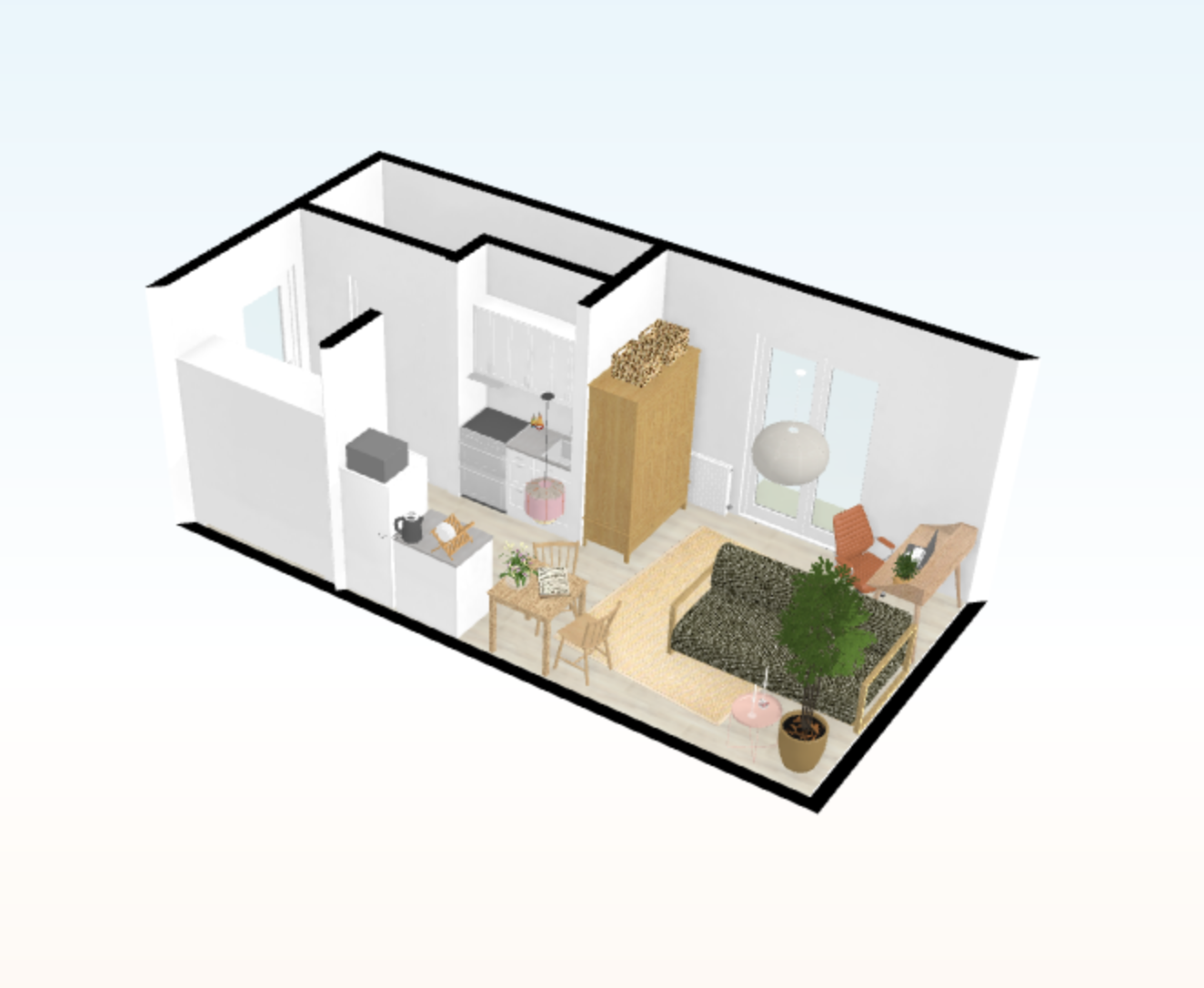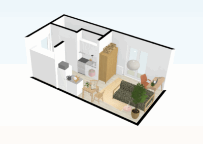 Se plantegning og billeder herunder. For pris og andre detaljer se Studiebolig Aalborg hjemmeside.