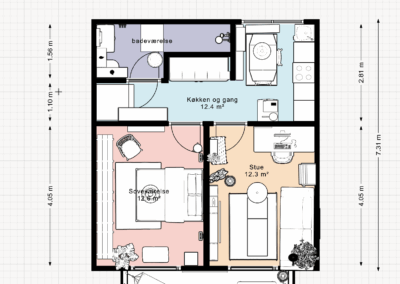 Se plantegning og billeder herunder. For pris og andre detaljer se Studiebolig Aalborg hjemmeside.