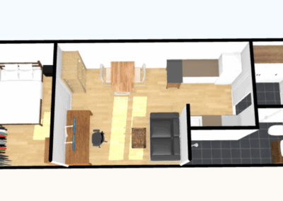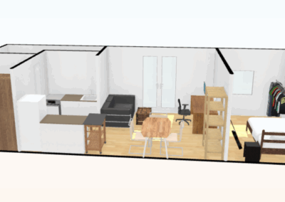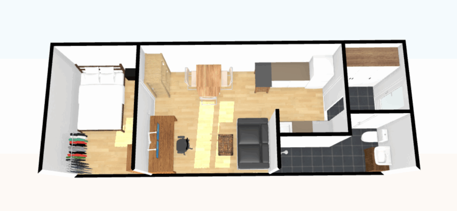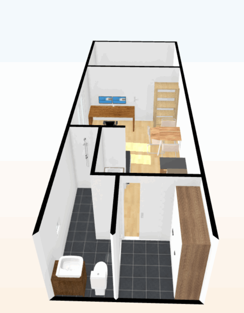 1½-room apartments are preferably offered to a single-applicant who has or are expecting children, and afterwards offered to a single-applicant without children. The apartments have a 38 til 40 m2 gross area, depending on the apartment, and all apartments have a 32 m2 net area. All apartments have their own kitchen, bathroom, entré and closet. Furthermore all apartments are set with a terrace door and have either a small garden with terrace or a balcony. Small variations can occur such as the color of the bathroom floor, doors, lists etc. For pricing and details see Studiebolig Aalborg website.